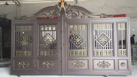 六.門(mén)面覆膜紙應(yīng)在門(mén)上安裝一周后清除。,  技巧:,  一、門(mén)框放入門(mén)洞時(shí)必須上下平行左右垂直,如門(mén)洞比門(mén)框大一公分以上時(shí),必須用石塊或木塊將門(mén)框的膨脹螺絲墊實(shí),在門(mén)框左上右下先打膨脹螺絲,不要擰緊,羅馬柱的門(mén)應(yīng)先裝羅馬柱到門(mén)框上,然后再放入門(mén)洞。,  安誠(chéng)護(hù)欄鋁藝圍欄護(hù)欄的亮點(diǎn):,  三、門(mén)鑰匙不靈動(dòng)二鎖不退應(yīng)先檢查門(mén)面未關(guān)時(shí)鑰匙不靈動(dòng),再檢查上、下鎖插孔是否有異物.主副門(mén)不靈動(dòng)時(shí)距離是否較短5毫米。,  使用鋁門(mén)時(shí),請(qǐng)勿將過(guò)重的物品懸掛在門(mén)扇上,或避免尖銳物品刻碰,刮痕,開(kāi)閉時(shí),請(qǐng)勿經(jīng)常用力過(guò)猛或打開(kāi)角度過(guò)大,以免損壞鋁門(mén)。,  開(kāi)工-鍛打-彎花-焊接裝配-打磨-熱浸鍍鋅-拋光-噴漆-烤漆-表面裝飾效果漆-透明漆-包裝鐵藝制作的防銹處理及工藝流程。